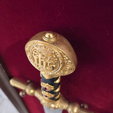 It is the Franklin Mint "Sword of the Holy Roman Empire." This isn't just a piece of steel; it’s a full-scale, 41-inch masterwork of religious iconography. Produced in collaboration with the legendary Marto bladesmiths of Toledo, Spain, this sword is a time capsule of high-end collectible culture.