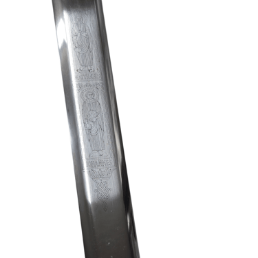 Their names are inscribed in Latin, lending an air of ancient authority to the piece. It’s rare to find a decorative weapon that carries this much narrative weight. You aren't just looking at a sword; you're looking at a story.